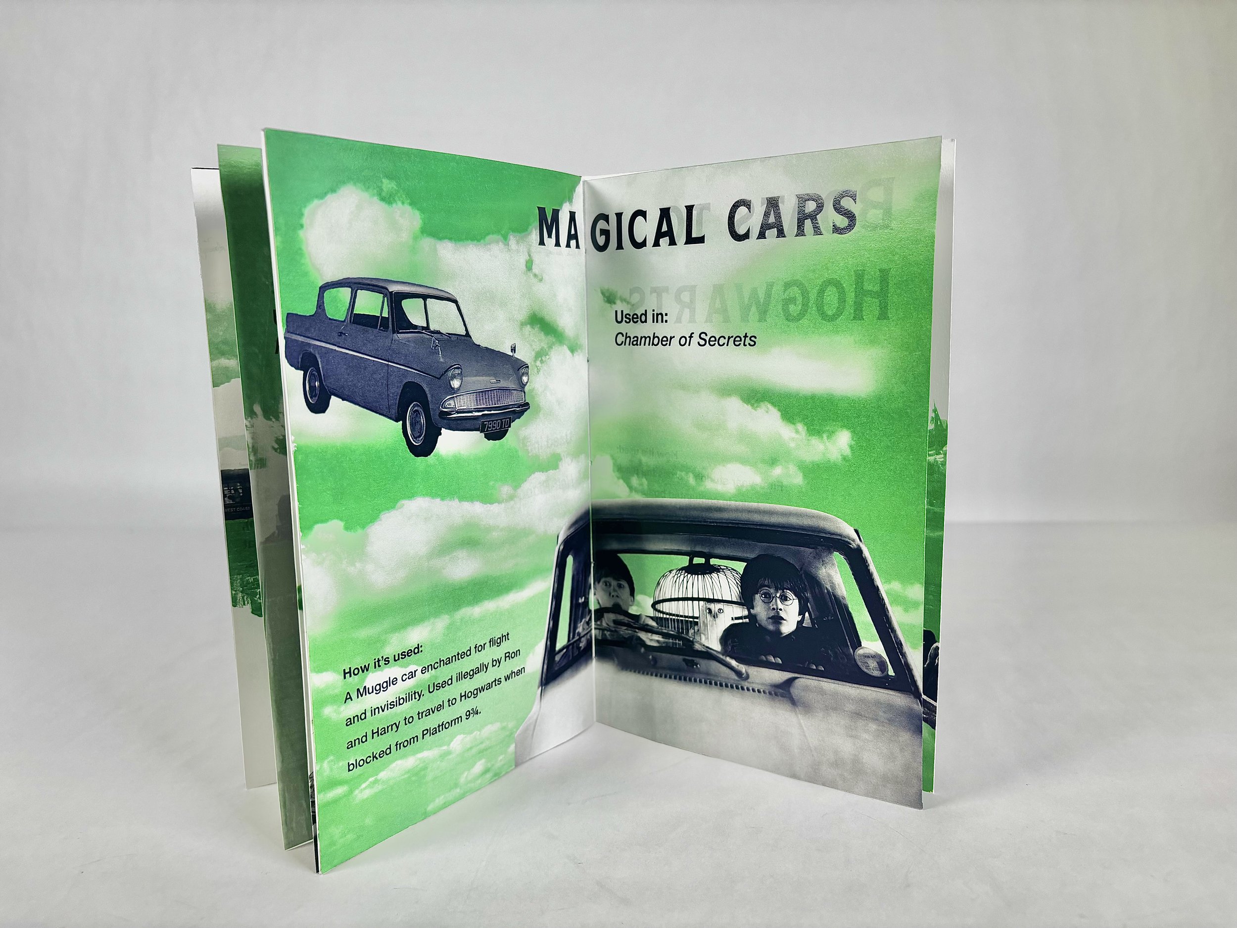 For this project, we had to create an experimental zine. We created 24-pages and bind it as well. We have a lot of freedom with the topic of the zine, so I chose to do Harry Potter transportation.